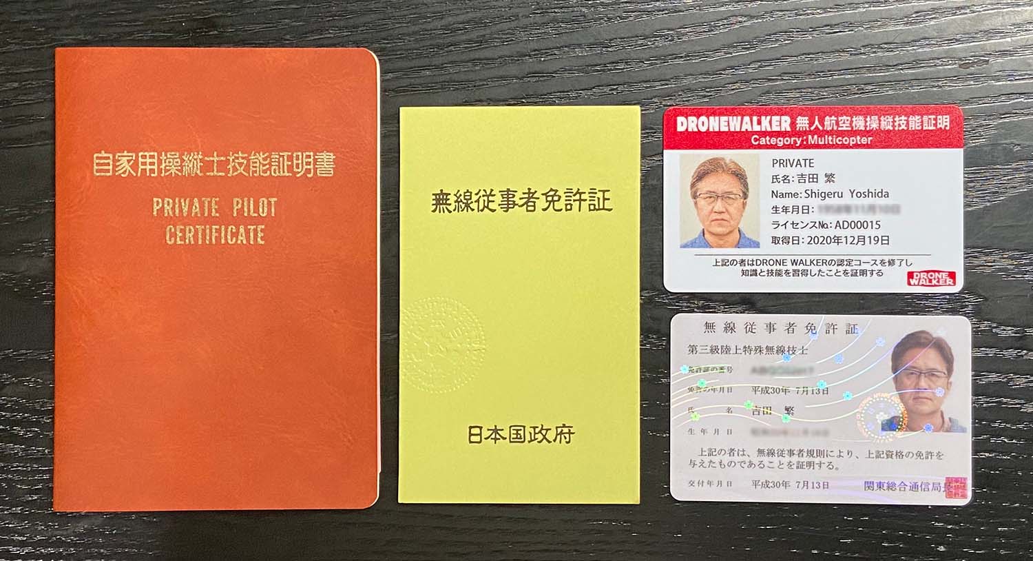 空撮という点では学生時代からモーターグライダーの操縦を行い、国家資格のパイロットライセンスも所得しています。併せて、航空機操縦の際に必要な無線の免許も所得もしています。